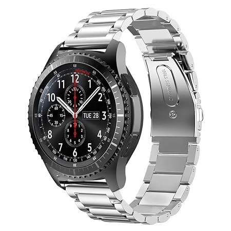Techonto 22mm Luxury Adjustable Stainless Steel Metal Strap, Compatible with Samsung Galaxy Watch 3 45mm/ Galaxy Watch 46mm/Gear S3 Classic/Frontier And All 22MM Watches(Only Strap) Type 3 Gold